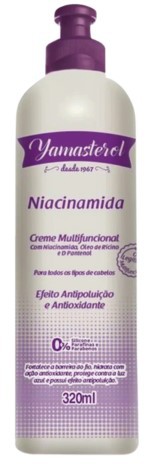 O Creme Multifuncional Yamá Yamasterol Niacinamida possui uma fórmula clássica, agora enriquecida com ação antioxidante, que previne o envelhecimento precoce dos fios, além de proteger contra a poluição e radiações UVA e UVB que o sol produz. Pode ser usado como pré-shampoo, condicionador, máscara hidratante, creme para pentear e protetor térmico. Promove resultados incríveis e impecáveis.